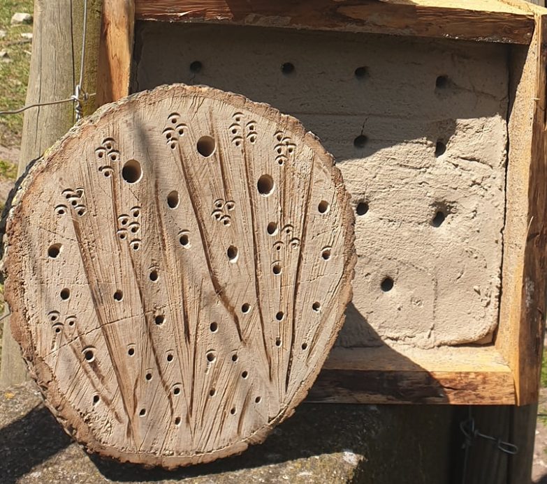 Vi bygger insektshotell och fågelholkar, stora som små. Precis som med fågelholkar så kan insektshotell byggas för att gynna specifika arter. En personlig favorit är lerhotell som lockar vårpälsbin.